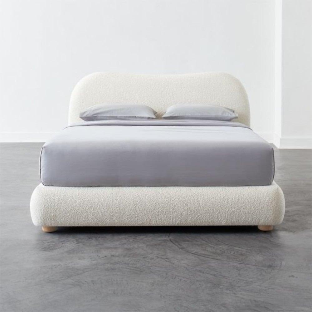 القماش المستخدم في السرير هو قماش بوكلية فاخر، بلون أوف وايت ناعم ودافئ، ليمنحك إحساسًا بالراحة والهدوء. يتميز قماش البوكلية بملمسه الفاخر ومرونته العالية، ما يجعله مثاليًا للأثاث الحديث، ويوفر لمسة أنيقة تناسب مختلف الأذواق.